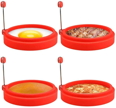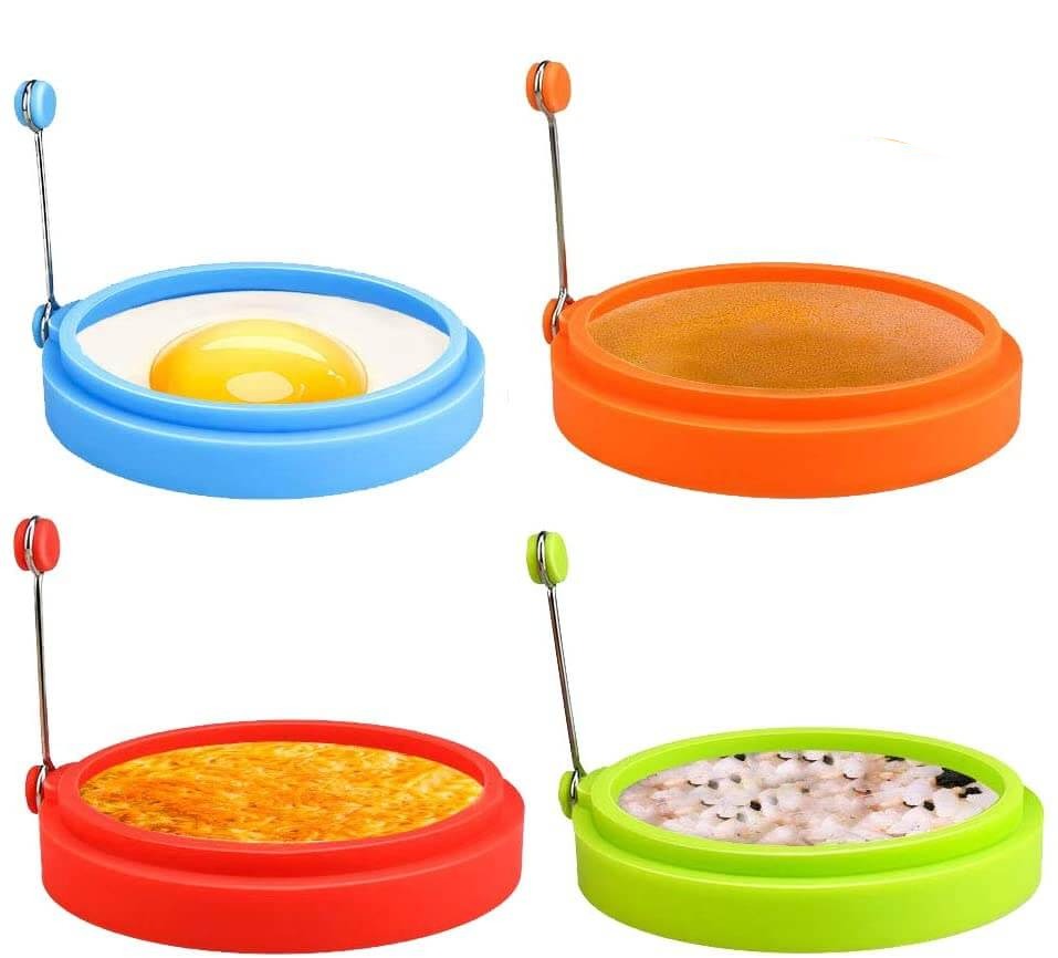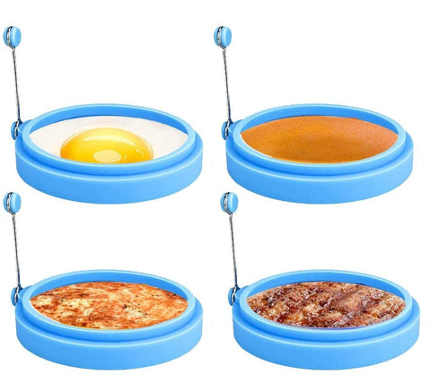 - Set of 4 egg & pancake rings. Made from extra thick, high-grade silicone with a stainless steel handle.